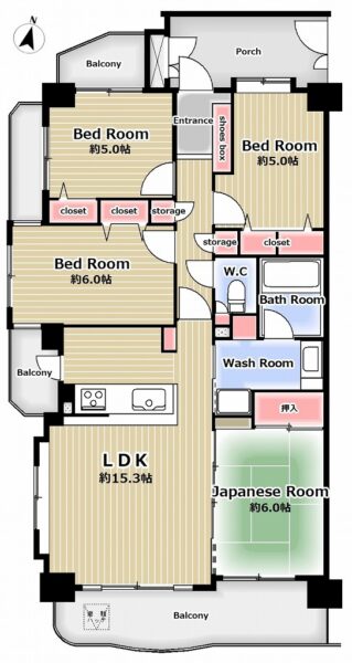 3面バルコニーの南西角部屋!